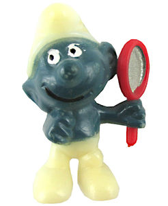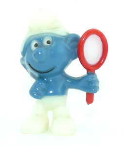 Der Eitelkeitsschlumpf ist mit die seltenste Ausführung aus blauem Grundmaterial. Bei der verkauften Figur ist die weiße Farbe noch sehr gut erhalten.