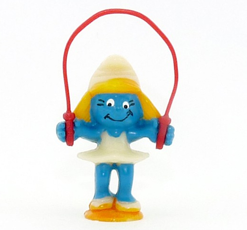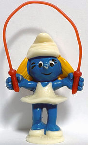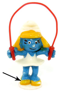 Schlumpfine mit Seil, wo die Schuhe gelb bemalt sind